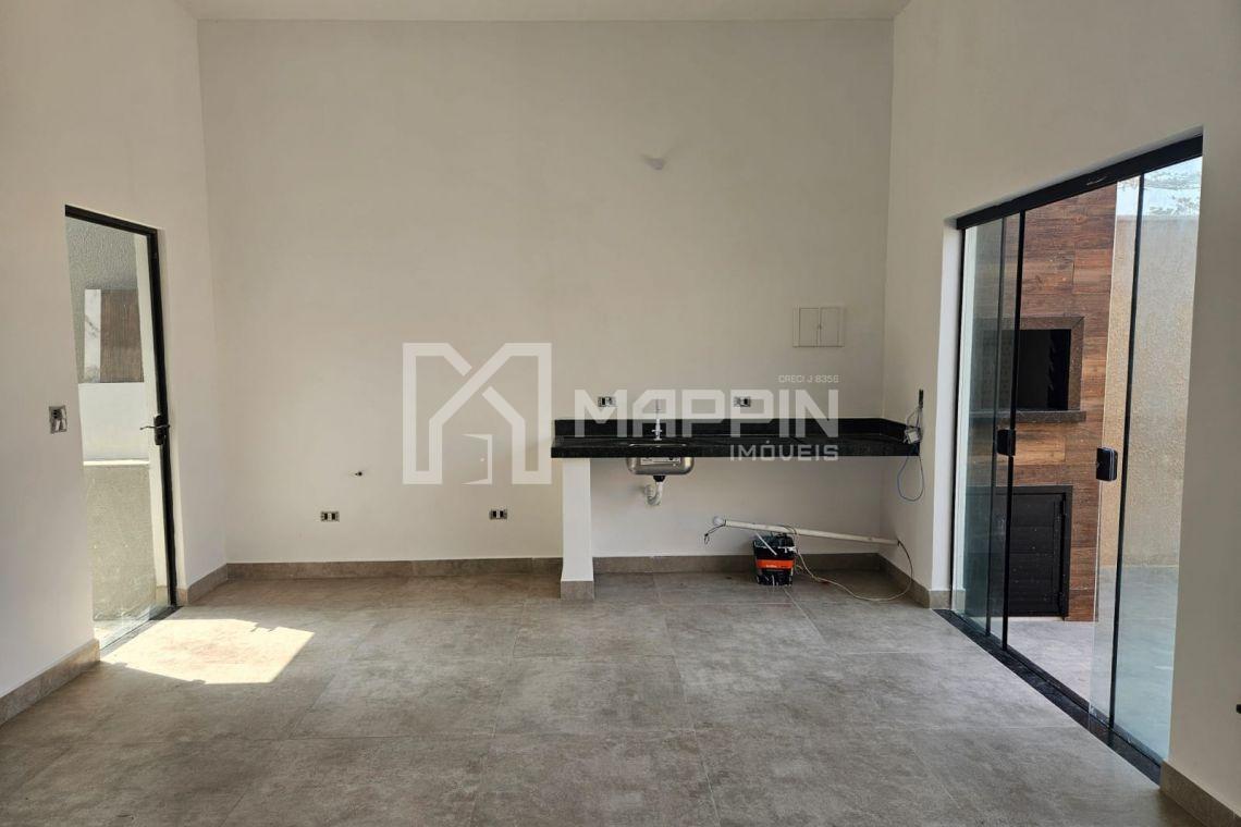 A casa possui ampla sala para dois ambientes (estar e jantar), integrada a uma cozinha em conceito americano, criando um ambiente moderno e funcional para o dia a dia.