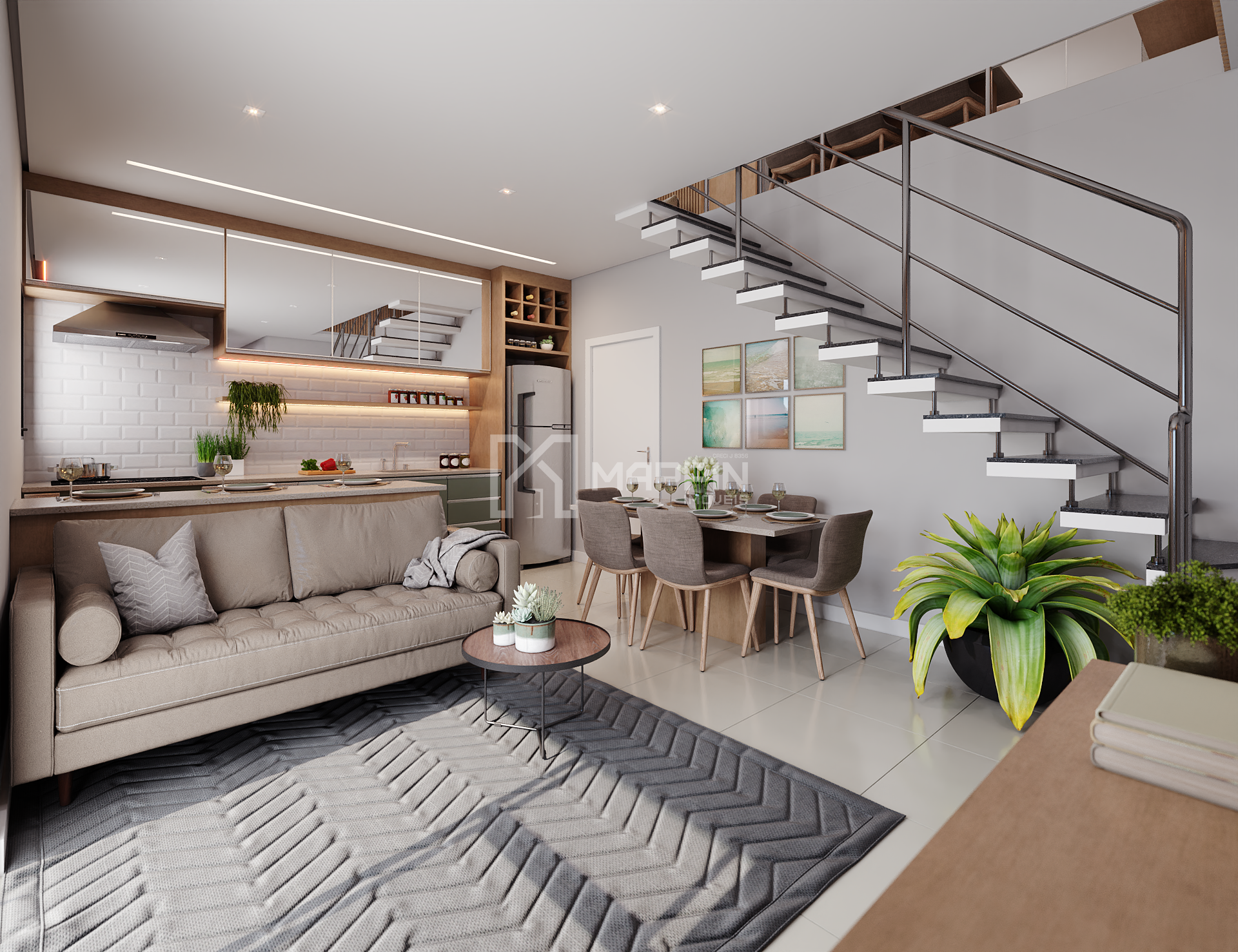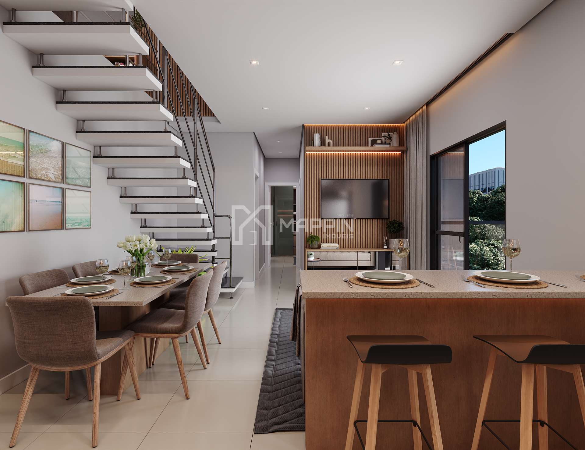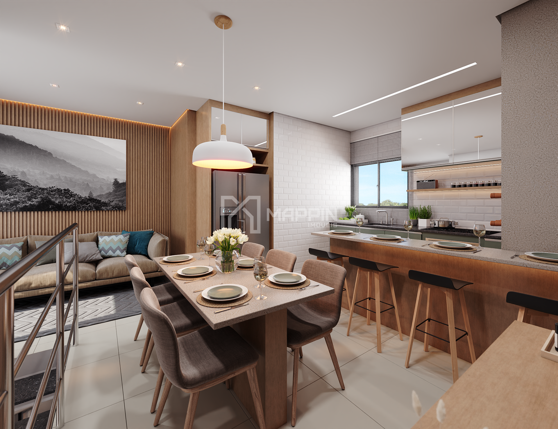 - Sala de estar, jantar e cozinha